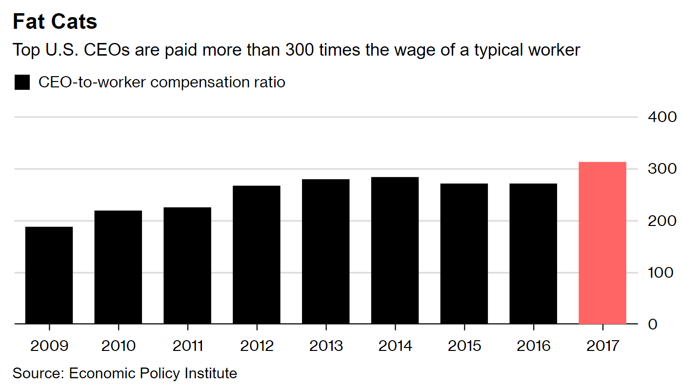 rapporto tra il compenso medio di un CEO e quello di un lavoratore dipendente è