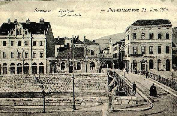 Nelle vecchie immagini, il Ponte Latino non appare molto diverso da come è ora, come diversa non è la Obala, il lungofiume, se non fosse per gli alberi che ora sono spariti e l'asfalto che ora copre la strada bianca. Certo la via Franz Josef ora è intitolata ai Zelenih Beretki (Berretti verdi, soldati bosniaci durante quest'ultima guerra), il ponte non è più chiamato Princip e del figlio del postino che voleva fare "un gesto grande per i popoli slavi del sud e liberarli dalla tirannia", non si fa più menzione.
